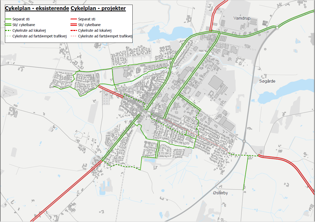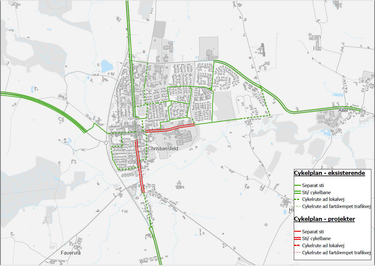 - Prioritere cyklister, så de nemt og hurtigt kan komme rundt i samt til/fra bymidten, og andre større mål og boligområder enten på sti eller en rute på svagt trafikerede veje med lav hastighed.