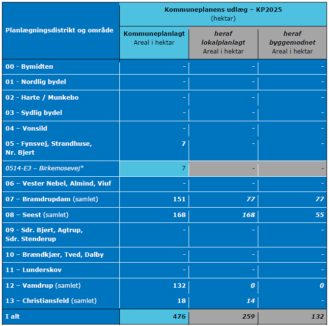 | Planlægning - boligformål | Planlagt rummelighed - total Opgørelse uden nye udlæg |