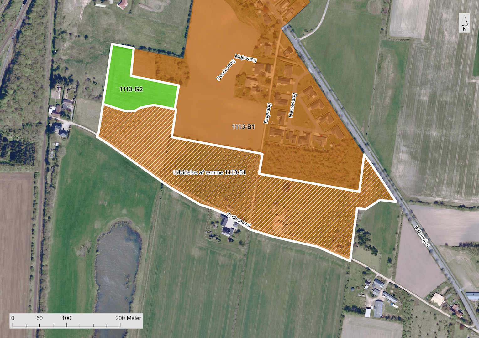 På ovenstående baggrund udlægges der i kommuneplanen et nyt boligområde i den sydøstlige del af byen, nord for Sydbanevej. Området er beliggende syd for det omtalte nye lokalplanlagte område ved Kirkevejen.
