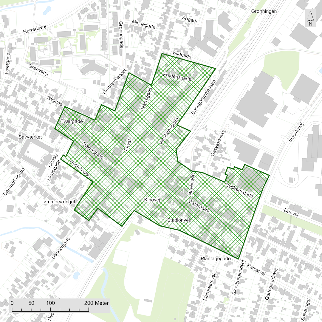 Afgrænsning af Vamdrup bymidte