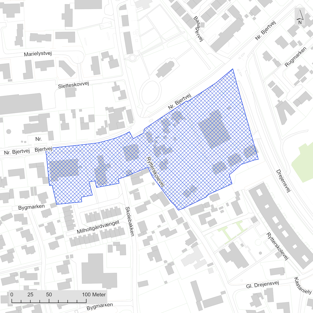 1) Gældende lokalplanlægning for boliger og lokalcenter ved Rytterskolevej og Drejensvej giver mulighed for en butik på 1.200 m2. Denne er realiseret.