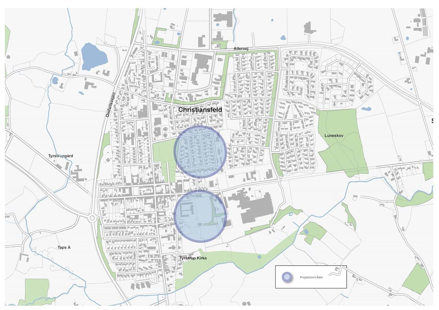 I Christiansfeld by er der et risikoområde med kulturhistorisk værdi der ligger lavt, og derfor oversvømmes ved ekstremregn. Udfordringen er dels stor afstrømning af overfladevand og for lille kapacitet i spildevandssystemet.