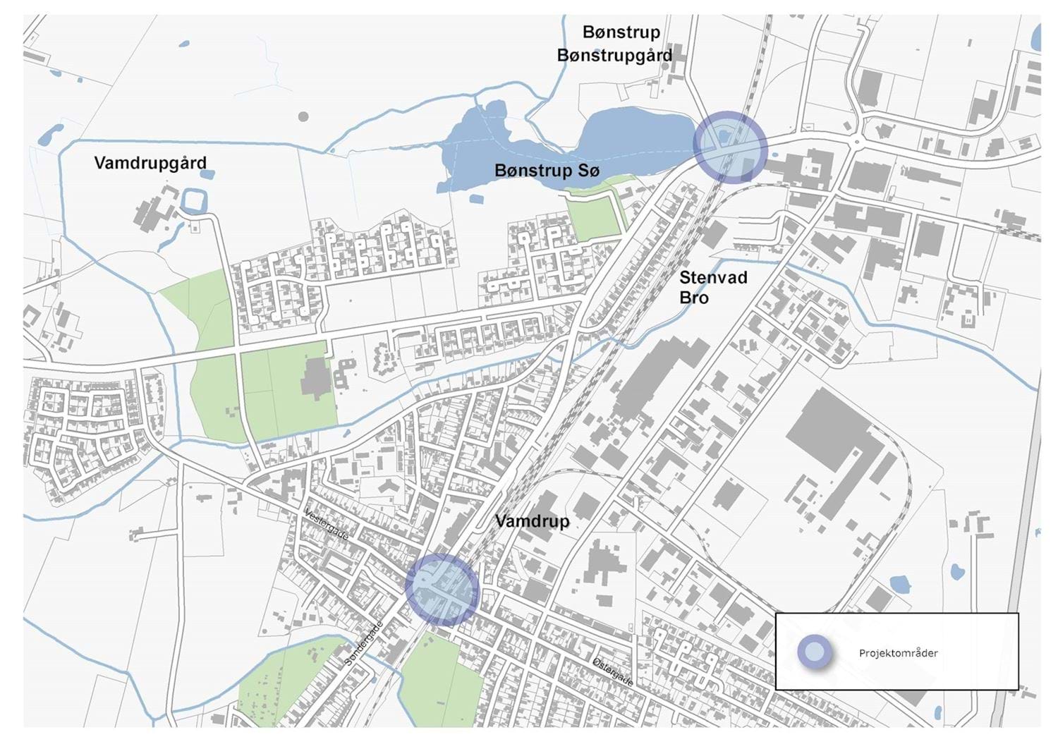 I Vamdrup peger klimahandlingsplanen på to viadukter, hvor der ved ekstremregn er risiko for oversvømmelse fra nedbør og spildevand. Begge viadukter er vigtige trafikale knudepunkter, og oversvømmelser her er kendte hændelser med stor gene for trafikken.